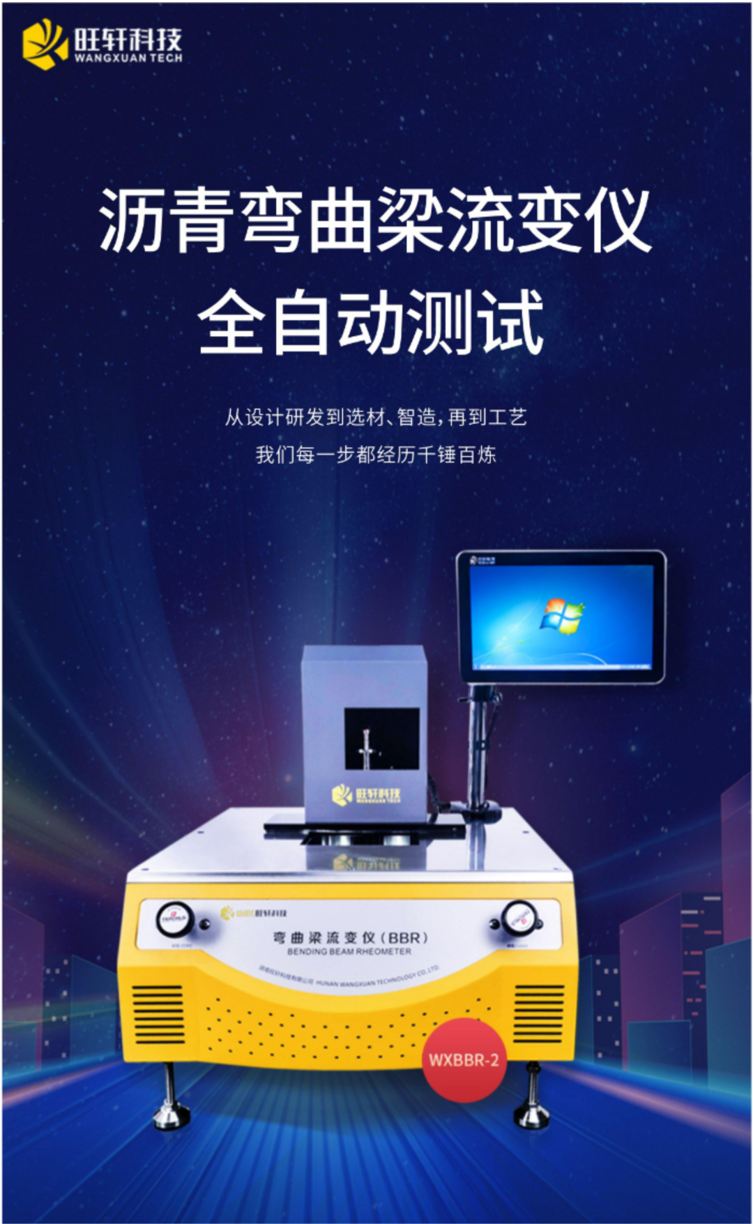 WXBBR-2Pro沥青弯曲梁流变仪(BBR)是湖南旺轩科技有限公司按照现行依据《公路工程沥青及沥青混合料试验规程JTG E20-2011》、《AASHTO T313-09试验使用弯曲梁流变仪BBR测定的沥青结合料的弯曲蠕变硬度标准方》、ASTM D 6648《美国材料与试验协会标准》、SH-T 0775-2005 《沥青弯曲蠕变劲度测定法(BBR法)》、EN 14771-2012《沥青和沥青粘合剂.挠曲蠕变刚性的测定》 等规范。设备采用微机自动控制技术、高精度传感器技术、制冷技术及气动控制技术开发的,在原来的WXBBR-2上做了升级,主要采用不同品牌的传感器以及新一代空气轴承技术,稳定性更高。它主要测定沥青的弯曲蠕变劲度和m值。该方法可用于原样沥青、压力老化后的沥青和薄膜烘箱(或旋转薄膜烘箱)后的老化沥青。仪器结构紧凑、式样美观,微机进行整个过程的全自动测试。